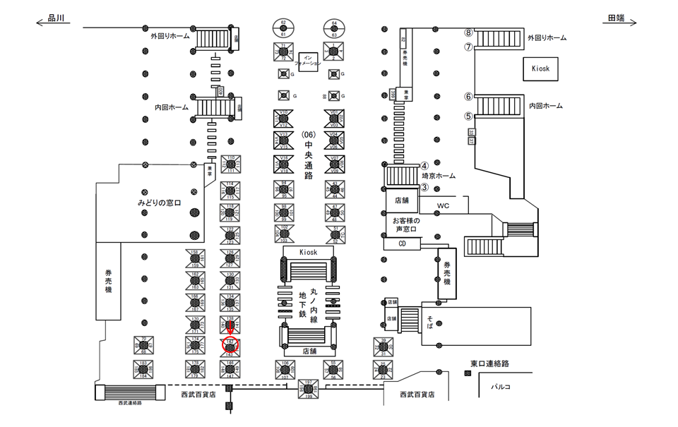 ○中央通路№174 改札外コンコース(中央通路 西武東口方面 柱) |