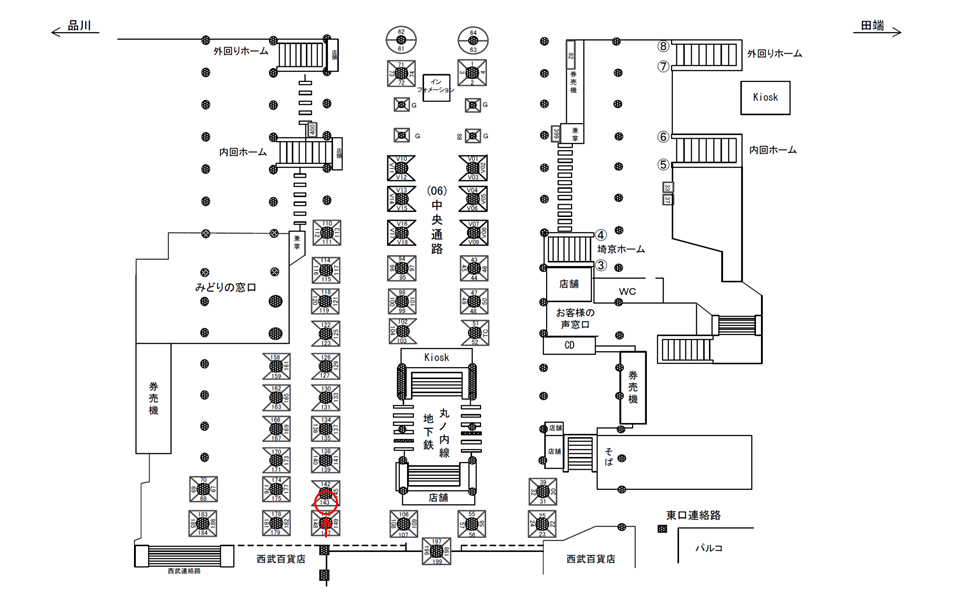 ○中央通路№178 改札外コンコース(中央通路 西武東口方面 柱) |