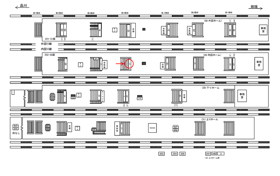 ○外回りホーム№31 ホーム上(階段正面 JR山手線外回りホーム) |