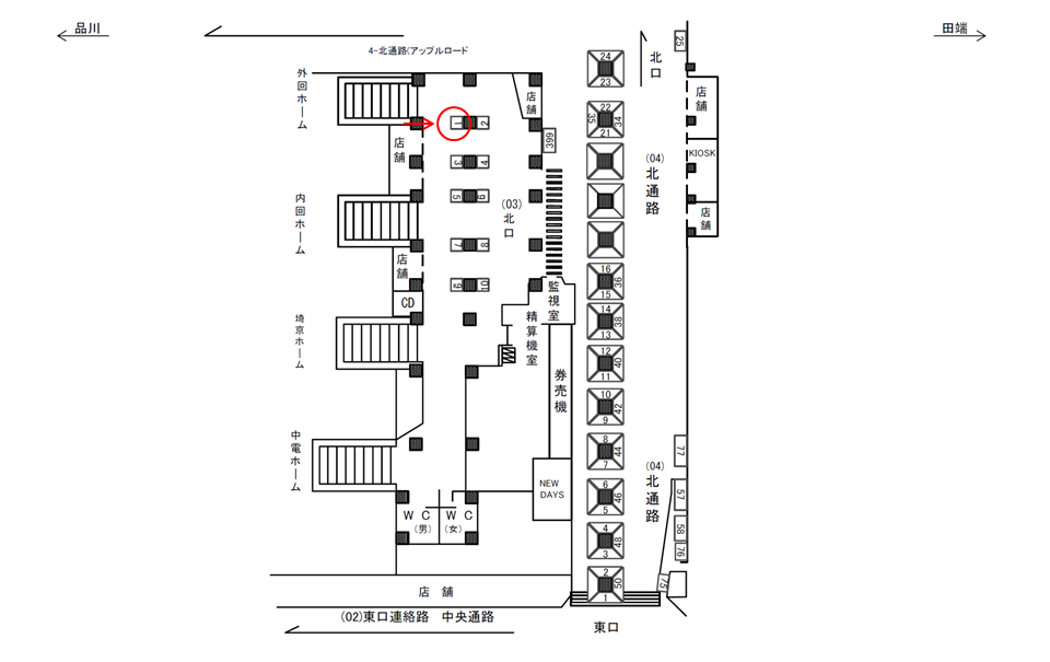 ○北口№5 改札内コンコース(北改札 山手線ホーム階段付近 柱) |