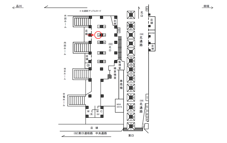 ○北口№4 改札内コンコース(北改札 山手線ホーム階段付近 柱) |