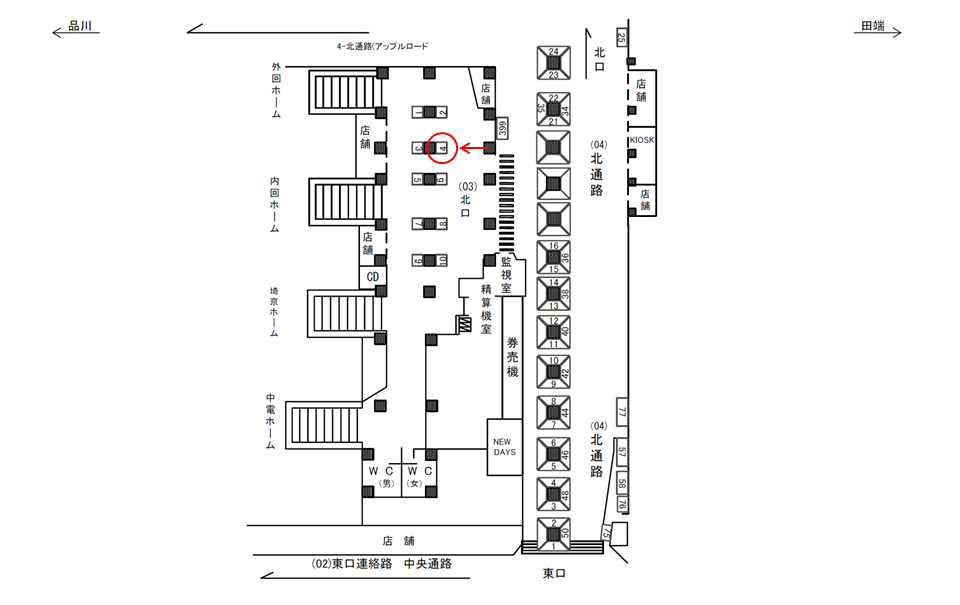 ○北口№5 改札内コンコース(北改札 山手線ホーム階段付近 柱) |