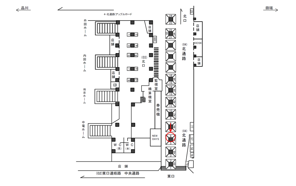 ○北口№6 改札内コンコース(北改札 山手線ホーム階段付近 柱) |