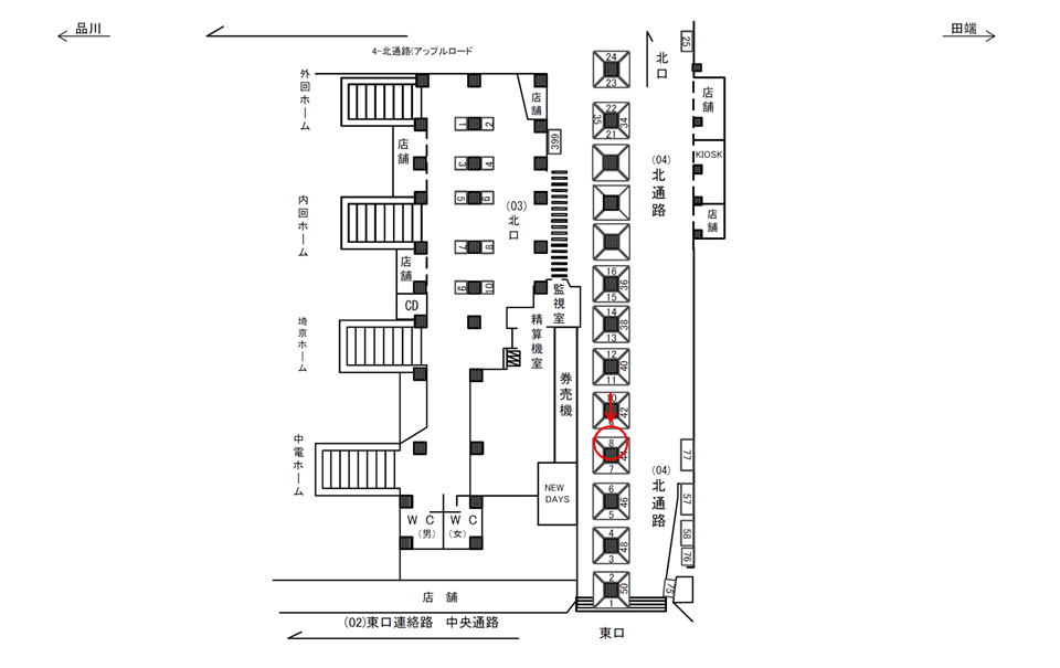 ○北口№8 改札内コンコース(北改札 山手線ホーム階段付近 柱) |