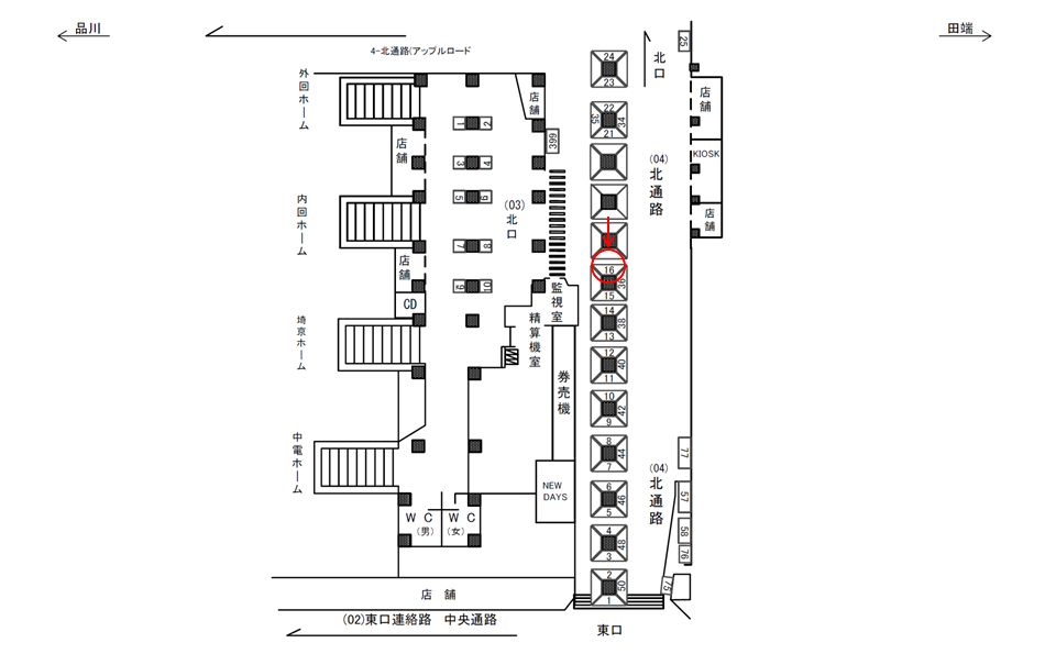 ○北口№4 改札内コンコース(北改札 山手線ホーム階段付近 柱) |