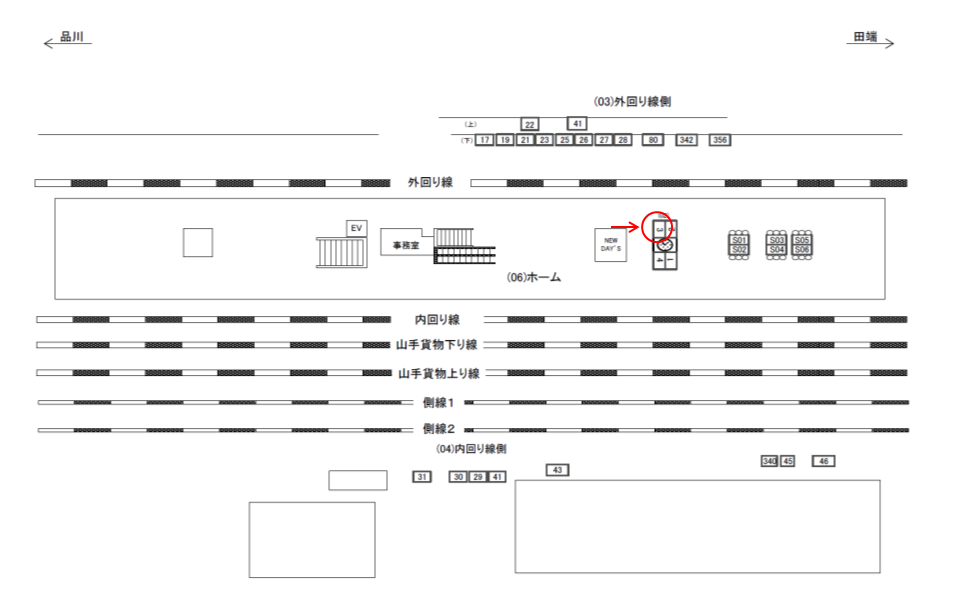 山手線の線路向こうにある広告看板です。 外回り線上野・東京方面の電車を待つ方の正面に位置します。 こちらはホームからすぐ目の前にあります。 近隣の店舗施設の宣伝や細かい情報を見てもらいたい方にお勧めです。