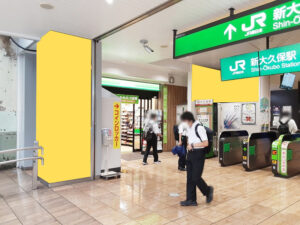 新大久保駅の改札そばにある柱巻きシート広告です。改札の外にある2本の柱面を広告として使います。新大久保駅の出口で待ち合わせをする方でしたり、大久保通りを通行する方にも接触してもらえます。 JR 新大久保駅 「新大久保改札外アドピラー2本セット」 ■ 広告料金 1,200,000円/1週間 1,920,000円/2週間 2,640,000円/3週間 3,360,000円/4週間 ※広告料金にシート制作・施工費・撤去費が含まれます ■ サイズ A:3.110mm×1.875mm×2面 B:3.110mm×2.880mm×3面 ■ 開始日 毎週月曜日より(日曜日の夜作業) ■ 備考 鉄道にて業務利用される場合があります。要確認。 景観条例の関係で、1か月前までに審査済みデザインデータの入稿が必要です。