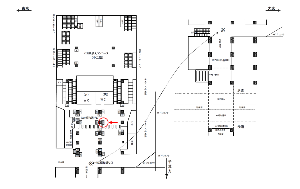 ○本屋口№80 改札外コンコース(電気街口改札) |