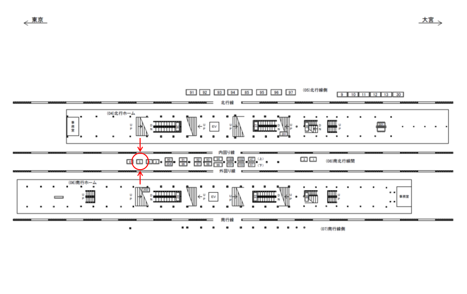 改札内コンコース(ホームエスカレーター横 山手線・京浜東北線)