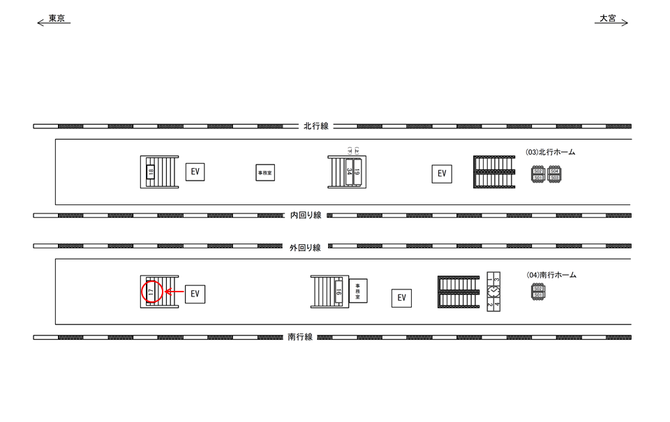 ホームは2面。それぞれ南行方向と北行方向の山手線と京浜東北線が並走します。