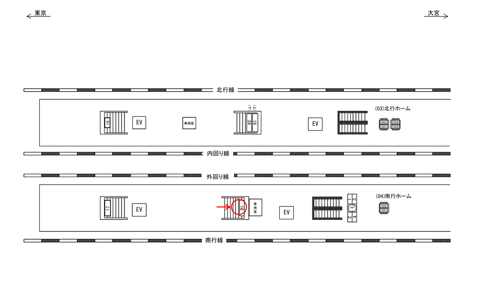 ホームは2面。それぞれ南行方向と北行方向の山手線と京浜東北線が並走します。