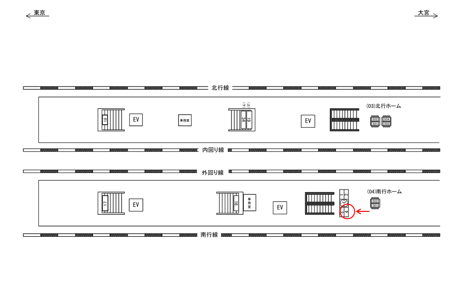 ホームは2面。それぞれ南行方向と北行方向の山手線と京浜東北線が並走します。