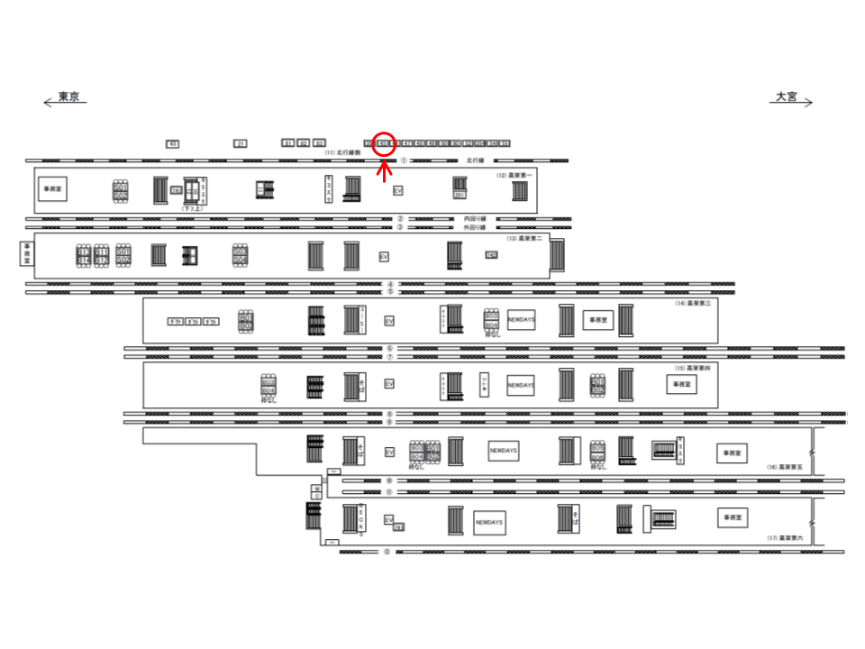 ○北行線側№81 線路前(JR京浜東北線北行 赤羽・浦和・大宮方面) |