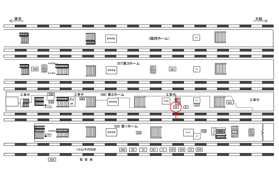 ○第3ホーム№B01&B02 ホーム上(京浜東北線 横浜・大船方面/上野東京ライン 宇都宮・高崎線、東京・上野・大宮・宇都宮・高崎方面) |