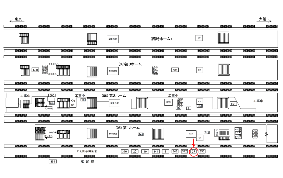 ○第3ホーム№B01&B02 ホーム上(京浜東北線 横浜・大船方面/上野東京ライン 宇都宮・高崎線、東京・上野・大宮・宇都宮・高崎方面) |