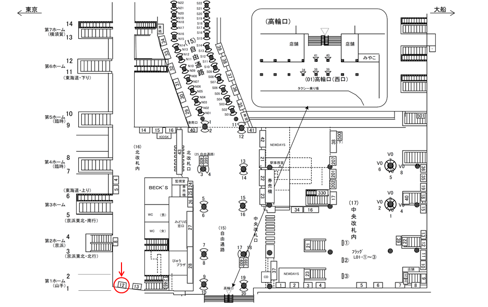 JR/品川駅/北改札内/№12駅看板・駅広告、位置図