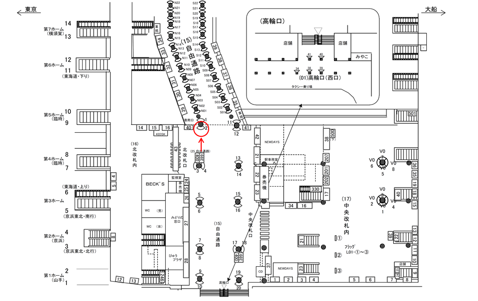 JR品川駅、コンコースの駅広告(駅看板)設備紹介です。 中央改札及び北改札を出場し、高輪口(西口)方面へ向かう方々にご覧いただけます。こちらの看板は、階段を下った先の柱に設置されている広告看板です。高輪口の出口付近です。 コンコース看板の特徴として駅利用者の移動中に広告接触を図れる事が出来ます。コンコース看板は駅出口付近に設置されている事も多く、駅周辺の店舗施設への誘導案内に適しています。看板の設置ロケーション次第でスムーズな集客動線に結び付けられます。 駅看板は6ヶ月や12ヶ月の広告スパンで利用される駅広告で、月額の広告コストが他の駅広告と比べて価格が抑えられております。 駅看板は駅構内で長期的に(また継続的に)広告掲載をお考えのお客様にオススメしている広告商品です。 JR品川駅の駅看板の利用状況はスタッフまでお問い合わせください。この看板はもちろんですが、他にもいい広告看板が空いていれば合わせてご案内差し上げます。