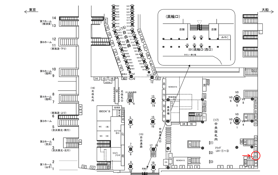 JR/品川駅/中央改札内/№10駅看板・駅広告、位置図