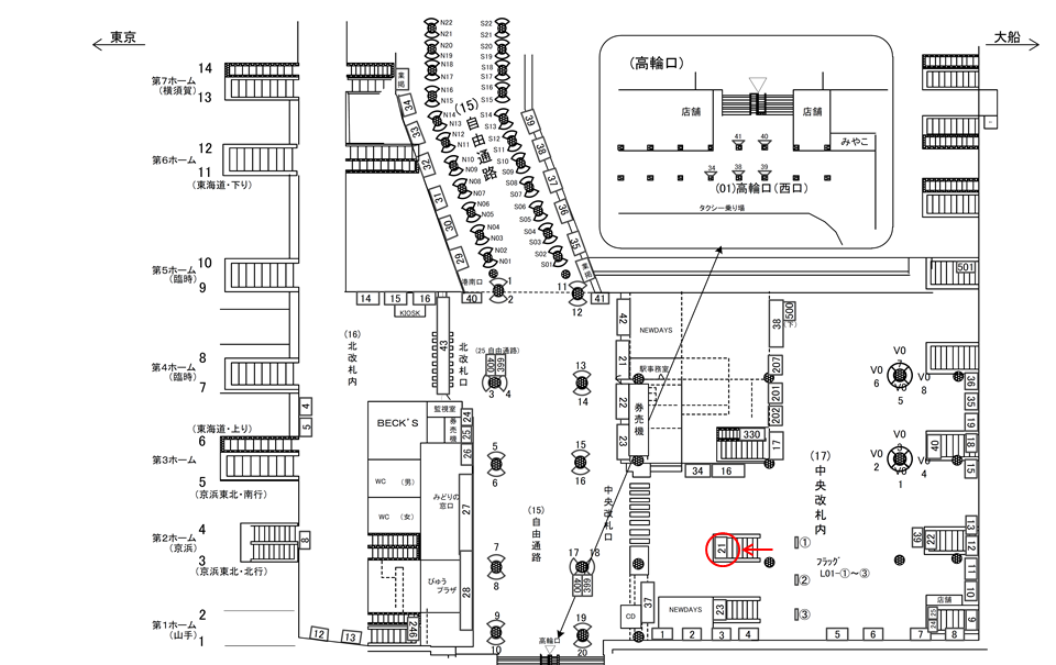 JR/品川駅/中央改札内/№21駅看板・駅広告、位置図