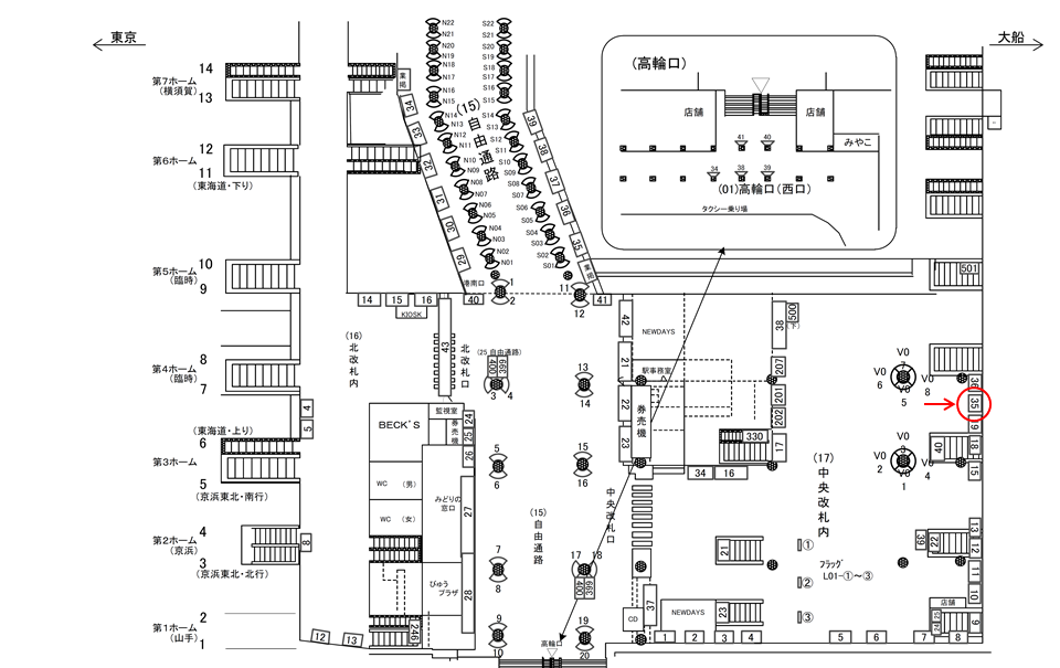 ○第3ホーム№B01&B02 ホーム上(京浜東北線 横浜・大船方面/上野東京ライン 宇都宮・高崎線、東京・上野・大宮・宇都宮・高崎方面) |
