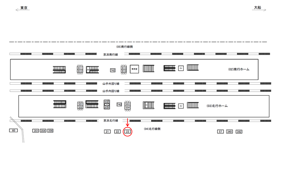 ○北行線側№22 線路前(JR京浜東北線 東京・上野・大宮方面) |