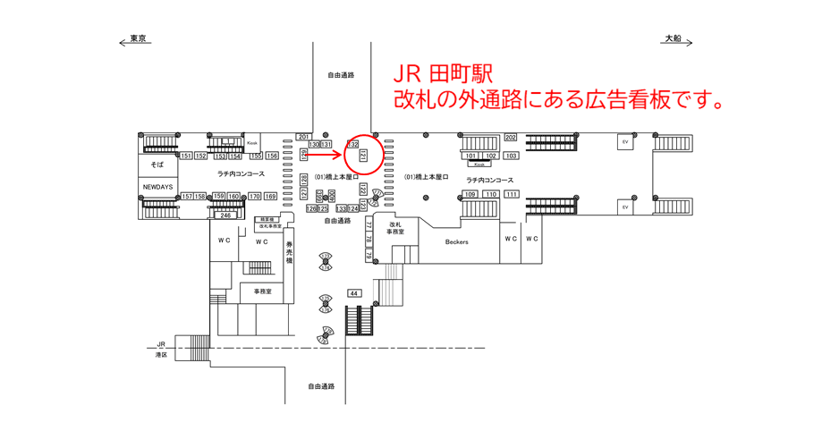 ○橋上本屋口№151 改札内コンコース(北改札付近) |
