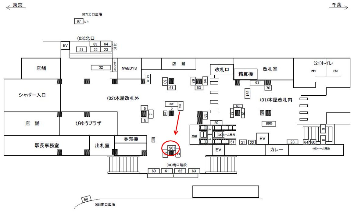 主に、南口方面へ向かう方の誘導用として、または駅利用者以外の構内を通過する方への訴求が可能な媒体です。