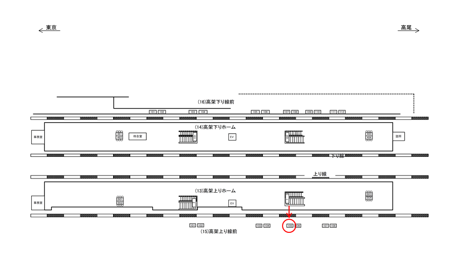 中央線上り線路前にございます。※三鷹・新宿・東京方面
