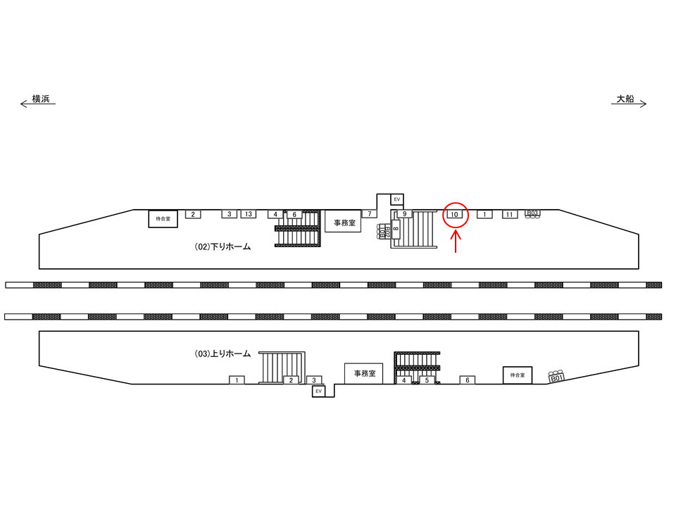 下りホームの後ろ壁面に設置された電飾看板です。上り電車(横浜・東京・大宮方面)をお待ちの方に線路を挟む形で正対する位置にございます。