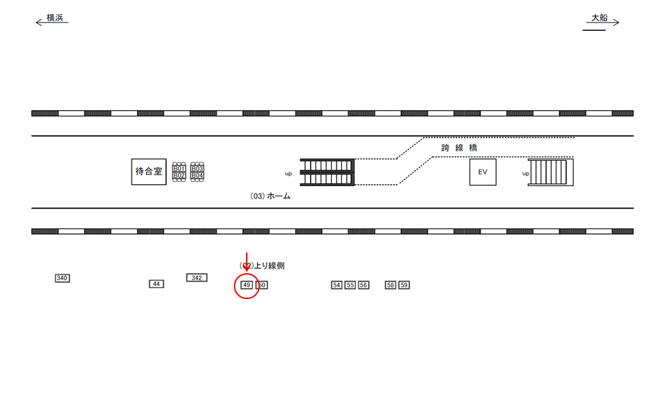 改札は1箇所、ホームは京浜東北線・根岸線と横浜線が停車する島ホームが1面あります。