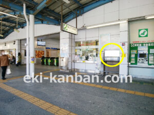 JR磯子駅は改札内の構内通路に広告用ポスターボードがあります。1週間1枚から利用可。短期的に広告を掲載したい方向けの広告商品です。