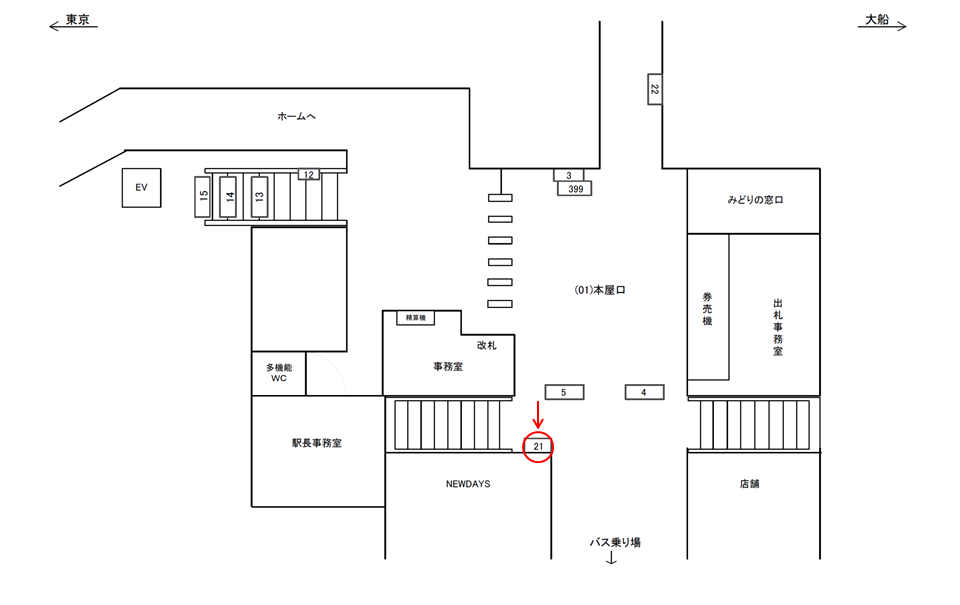 改札は1箇所、ホームは京浜東北線・根岸線と横浜線が停車する島ホームが1面あります。