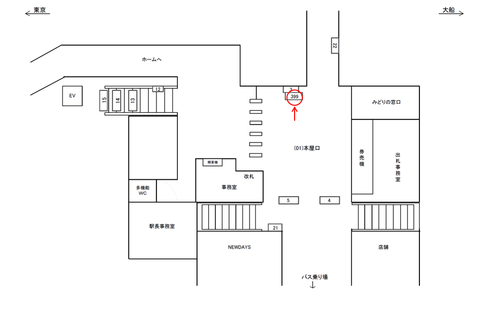 改札は1箇所、ホームは京浜東北線・根岸線と横浜線が停車する島ホームが1面あります。