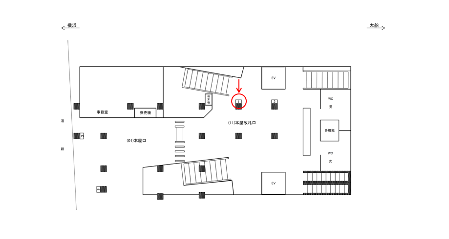山手駅構内の柱看板です。横浜方面から山手駅で下車した方が、ホームから改札へ向かう途中に目にする場所にあります。