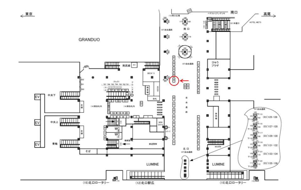 JR/立川駅/自由通路/№59駅看板・駅広告、位置図