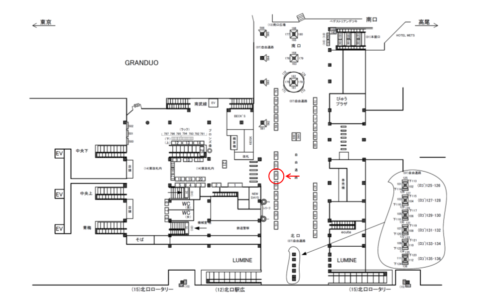 ○自由通路№75 改札外コンコース(自由通路 南口出口側) |