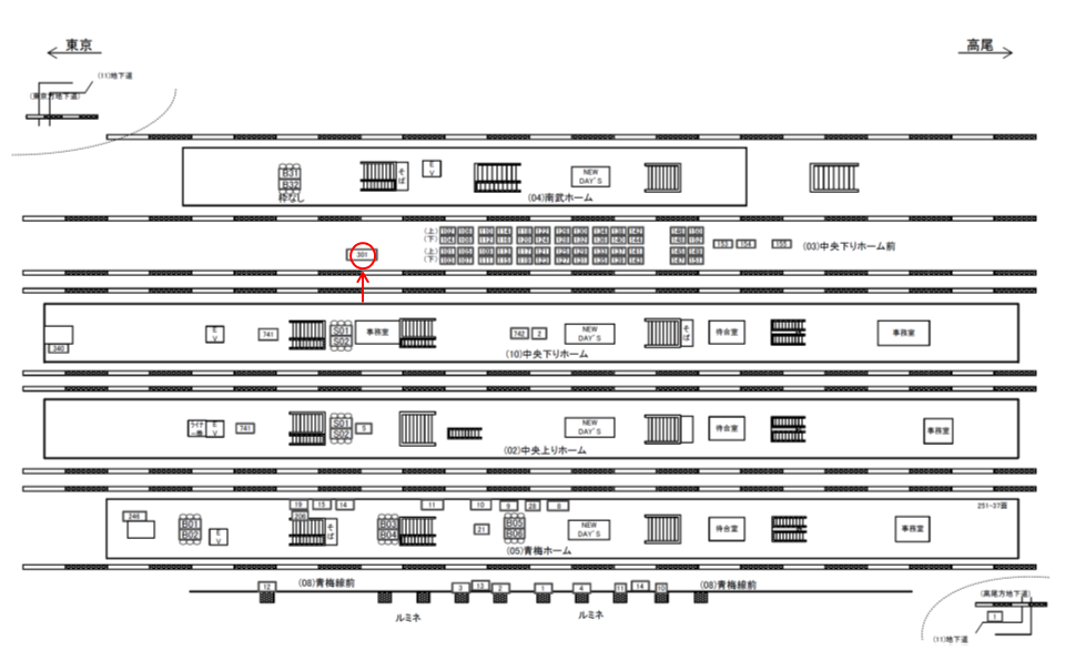 ○中央下りホーム前№117 線路前(JR中央線快速 八王子・高尾・甲府方面) |