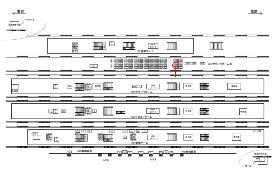 JR/立川駅/中央下りホーム前/№145駅看板・駅広告、位置図
