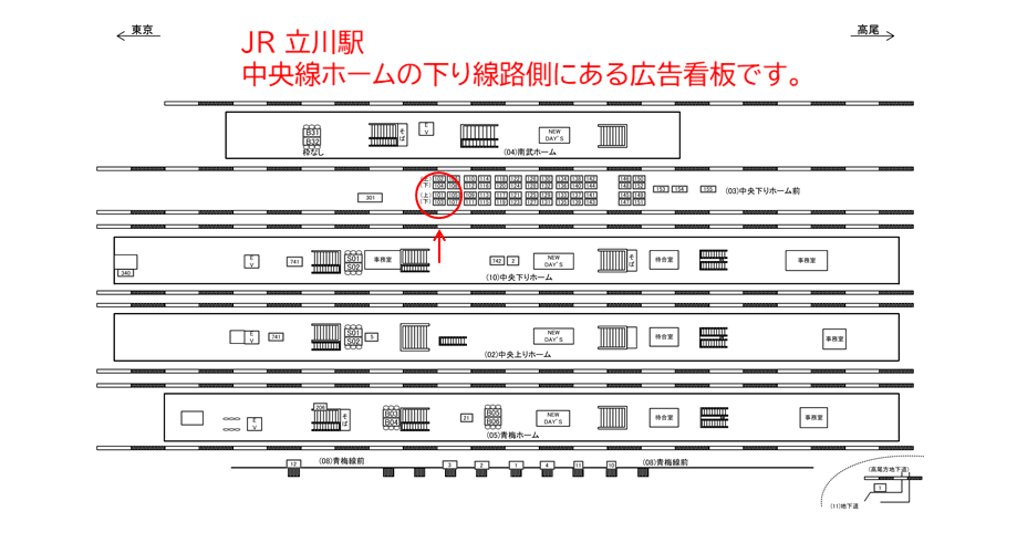 ○中央下りホーム前№137 線路前(JR中央線 立川・八王子・高尾方面) |