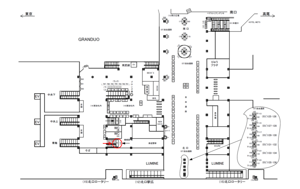 ○自由通路№63 改札外コンコース(自由通路 北口寄り) |