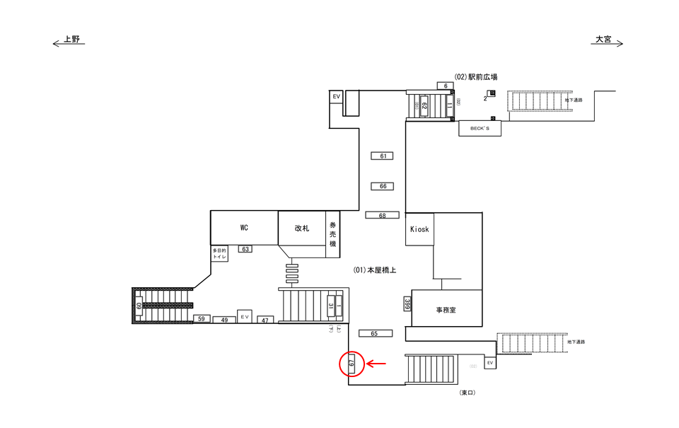 改札周辺の広告は移動動線上に見せられる広告が多く、駅周辺の店舗施設の案内や誘導に適しています。特にこちらの看板は東口方面にお住まいや勤め先がある方には日常的に目にとめてもらえるロケーションです。