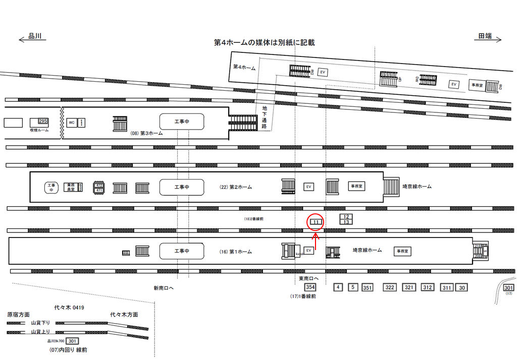 ○1番線前№354 線路前(JR 埼京線 渋谷・大崎・りんかい線・相鉄線方面 / JR 湘南新宿ライン 横浜・大船・小田原・逗子方面) |