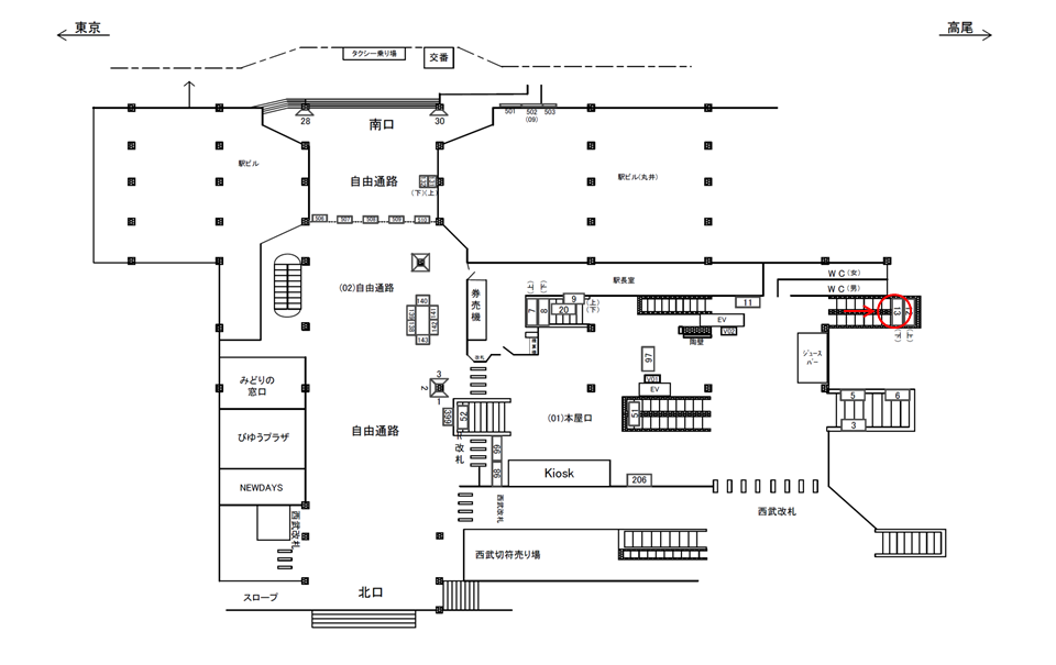 駅利用者に正対する位置にございます。視界に大きく入り込む位置ですので、企業広告や幅広く商品告知をお考えのお客様にお勧めいたします。また西武線とのお乗り換えもござます。各沿線へのご案内にもご利用ください。