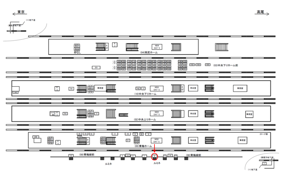 ○中央下りホーム前№151 線路前(JR中央線快速 八王子・高尾・甲府方面) |