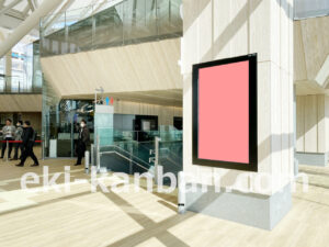 JR高輪ゲートウェイ駅「J・ADビジョン 高輪ゲートウェイ駅」は、改札内コンコース(1階改札前通路)の柱に設置されているデジタルサイネージ広告です。
