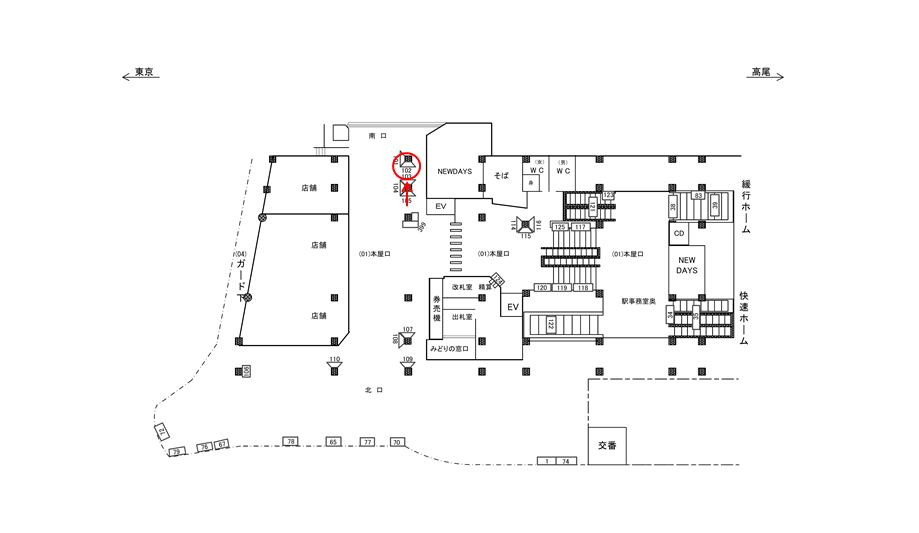 ※駅図面は上が南方向、下が北方向となっております。位置図では上を向いてますが南口方面なんです。