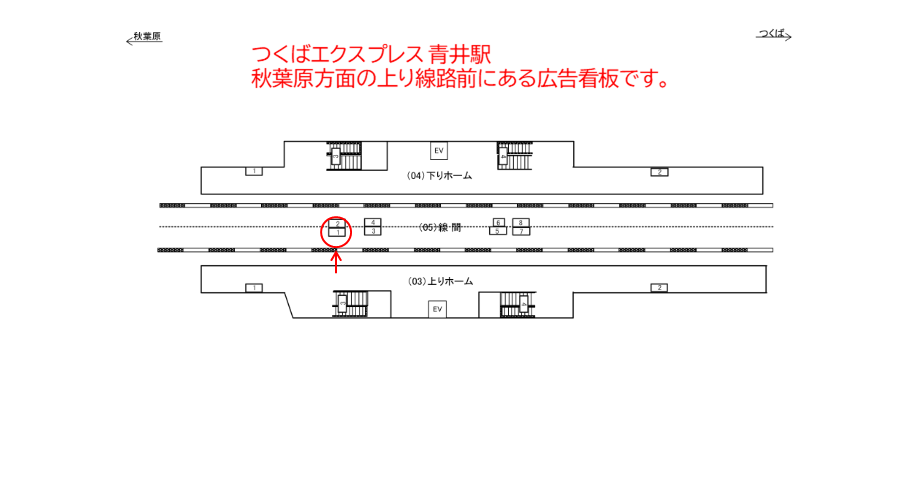 つくばエクスプレス 青井駅の駅構内、ホームにある駅広告設備(駅看板)のご紹介です。