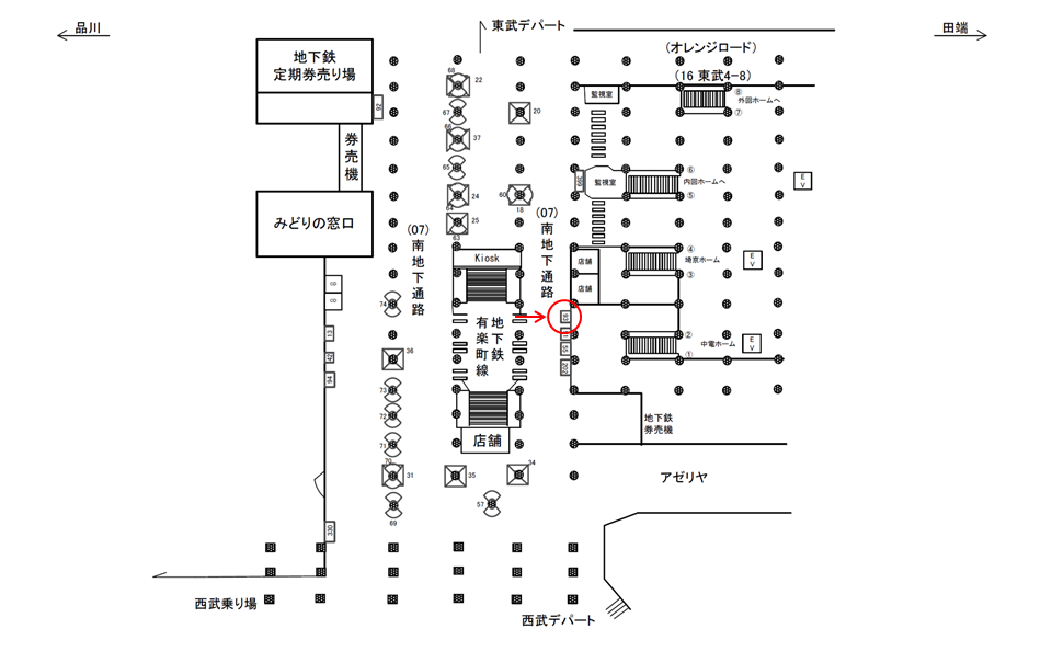 ○中央通路№69 改札外コンコース(中央通路 西武東口方面 柱) |