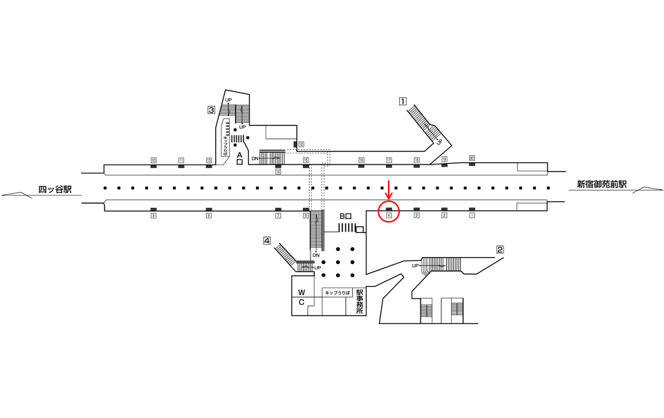 東京都新宿区に所在する東京メトロ丸の内線の駅です。甲州街道・外苑東通りの交差点真下に駅があります。駅周辺は商業地域ですが、小路に入ると住宅街が広がります。