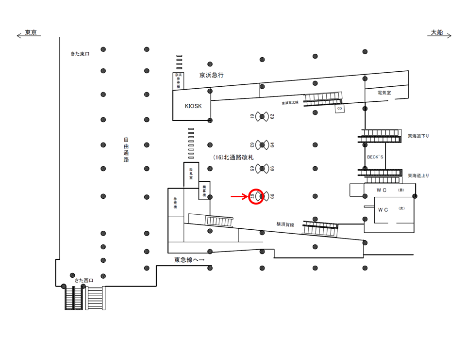 横浜駅、北改札の中にある柱面に設置された電飾タイプの広告看板です。看板の向きは改札からホームへ向かう際に正対する面にあり、これからJR線を利用される方にご覧頂けるロケーションです。